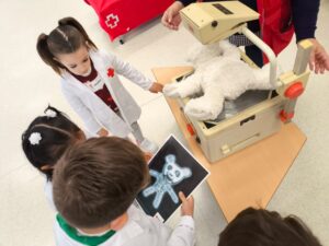 Hoy nos ha visitado la Cruz Roja para enseñarnos cómo es una ambulancia por dentro. Además, hemos podido jugar con un hospital de campaña para curar a los osos que estaban enfermos. ¡Qué bien lo hemos pasado!