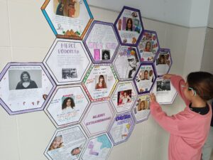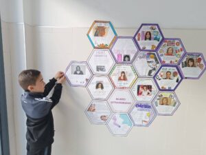 Hemos celebrado el día de la mujer, 8 de marzo, realizando un mural sobre mujeres extraordinarias. Hemos trabajado desde políticas y diseñadoras, hasta deportistas y científicas. Además, hemos hablado de las mujeres extraordinarias que forman nuestra vida, nuestras madres y abuelas.