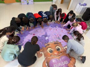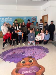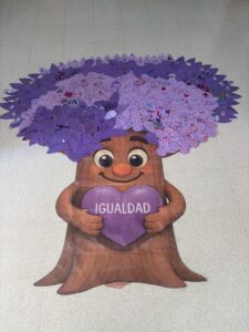 Con motivo del Día de la Mujer, en nuestro centro hemos querido realizar un pequeño gesto simbólico lleno de significado: hemos transformado a Olivín, nuestra querida mascota. Durante estos días, Olivín ha cambiado su color habitual para vestirse de morado, el color que representa la lucha por la igualdad y los derechos de las mujeres. Además, sus hojas se han llenado de nombres y referencias a algunas de las mujeres más representativas e inspiradoras, elegidas y trabajadas por nuestro alumnado.