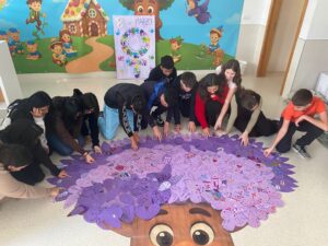 Olivín luce ahora más bonito que nunca: un árbol morado lleno de hojas que representan talento, esfuerzo y ejemplos que inspiran a nuestro alumnado cada día.