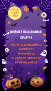 El próximo jueves, de 09:00 a 09:30, podéis visitar la exposición de sombreros terroríficos que hemos creado en la entrada del centro gracias a la participación de las familias.